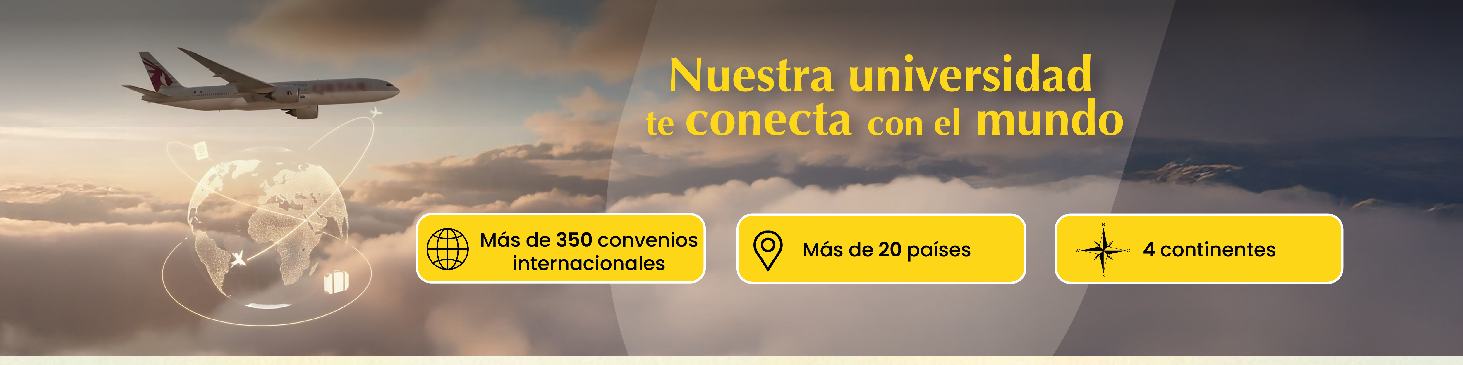 Nuestra universidad te conecta con el mundo con más de 350 convenios internacionales con universidades ubicadas en más de 20 países de los 4 continentes, ampliando tus oportunidades de formación global.