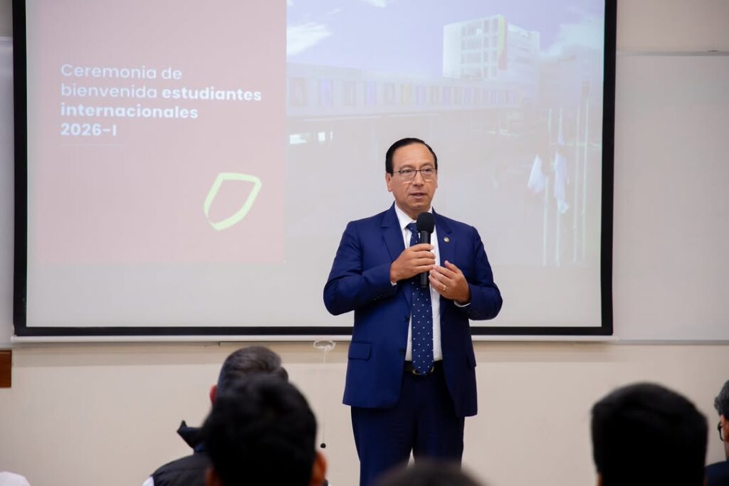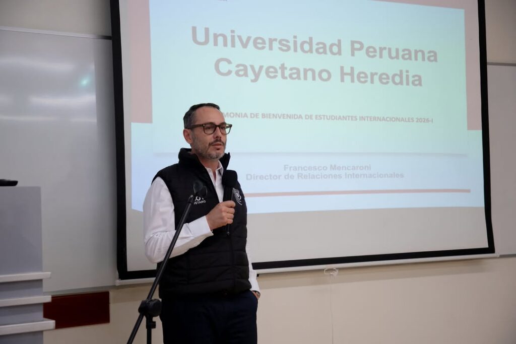 Durante la ceremonia, el Mag. Francesco Mencaroni, director de Relaciones Internacionales (Durin), ofreció una presentación sobre el Perú y la universidad, en la que resaltó su proyección internacional, su reconocimiento académico y las oportunidades de movilidad que brinda a estudiantes de todo el mundo. Asimismo, destacó la red de convenios y alianzas estratégicas que facilitan la llegada de estudiantes internacionales.